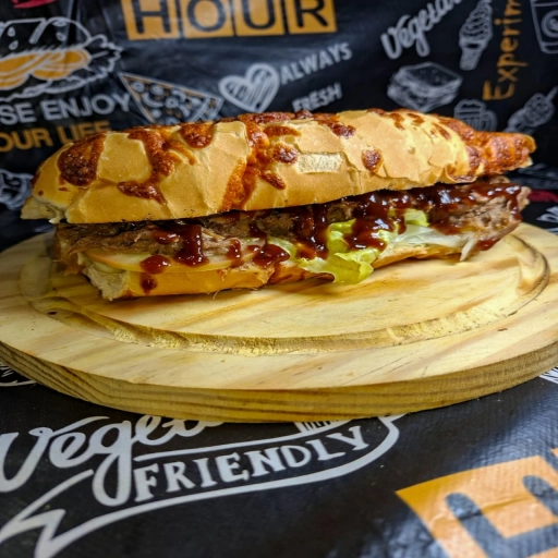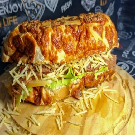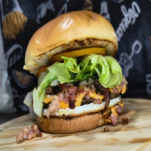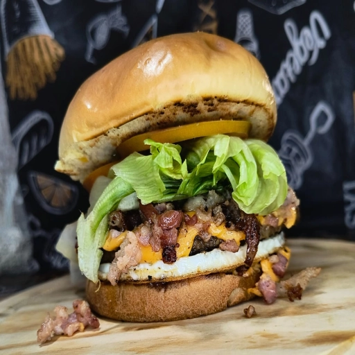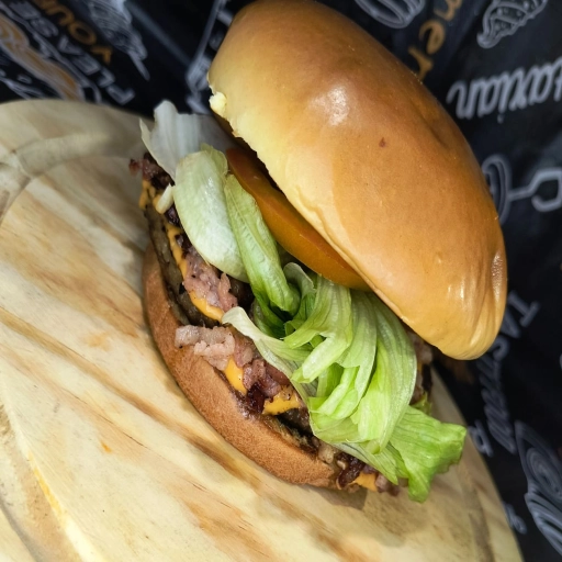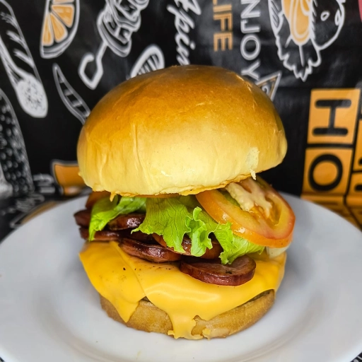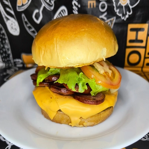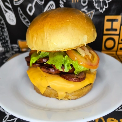 Este sanduíche é uma combinação perfeita de um suculento hambúrguer, queijo cheddar derretido, tudo envolto em um p... Ver completo
