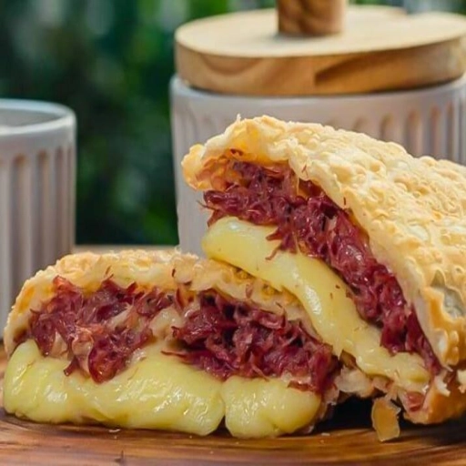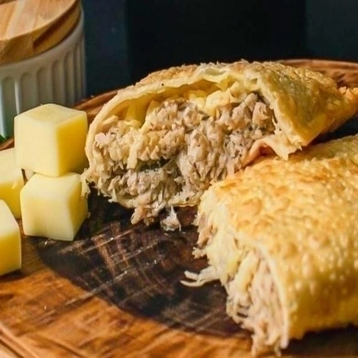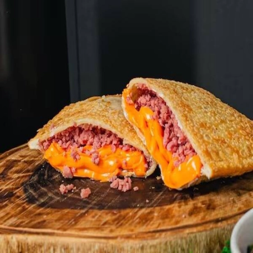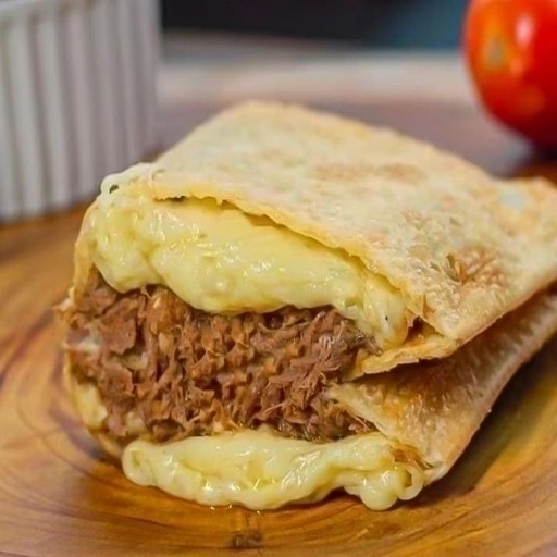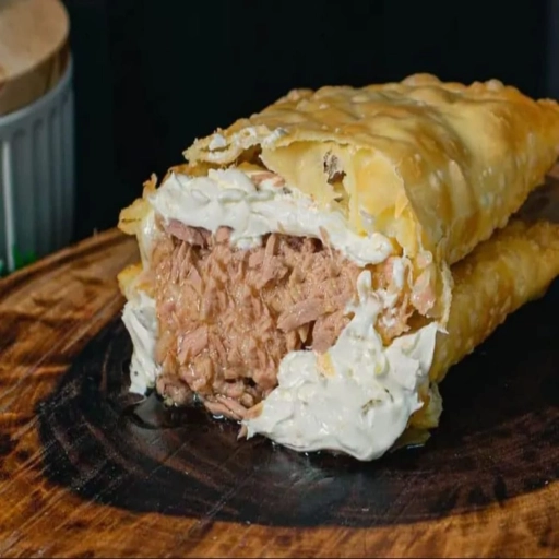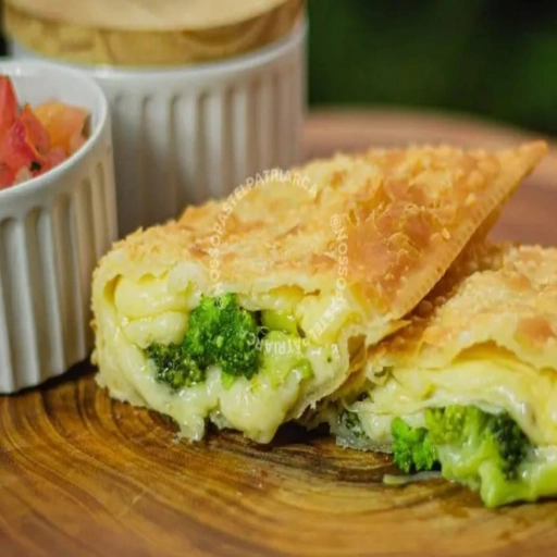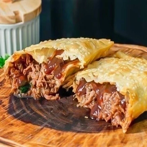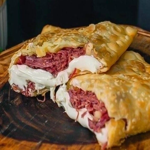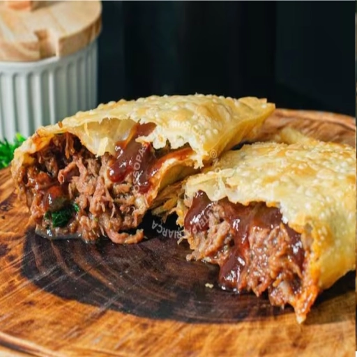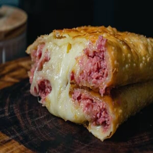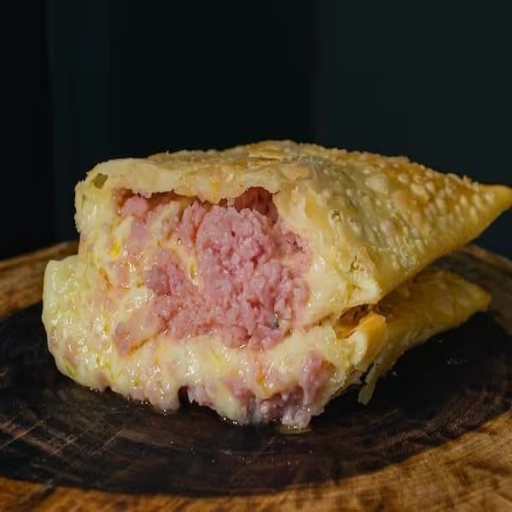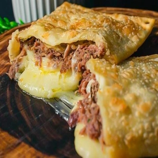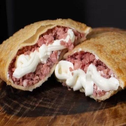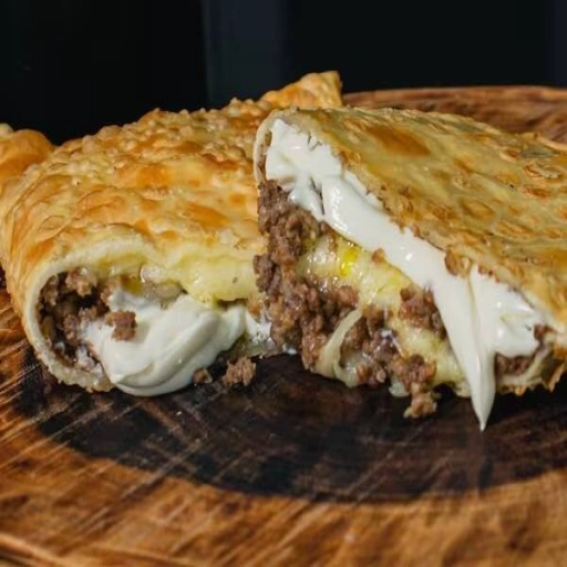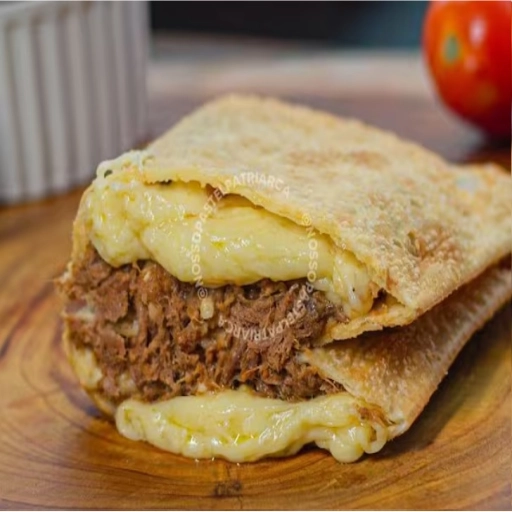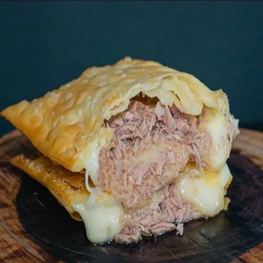 “Pastel crocante e dourado, recheado com carne seca desfiada, bem temperada e suculenta, combinada com Catupiry cremos... Ver completo