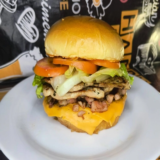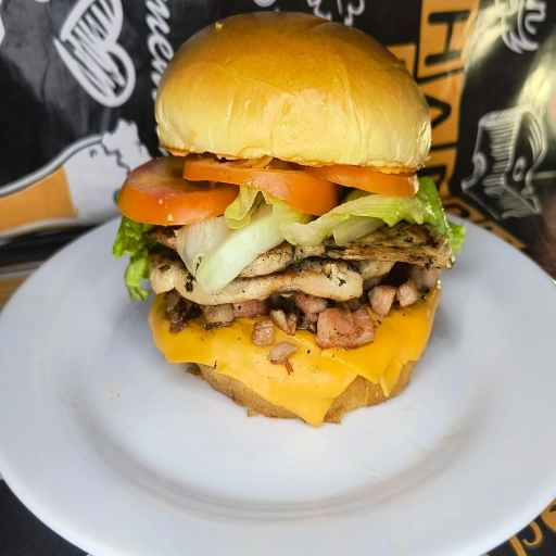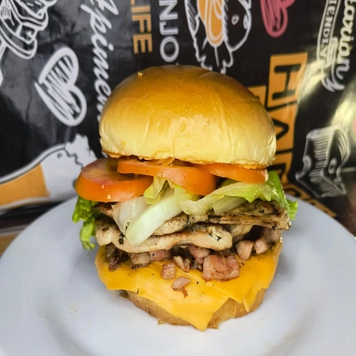 Este saboroso sanduíche de frango é uma verdadeira delícia do começo ao fim. Preparado com maestria, apresenta hambu... Ver completo